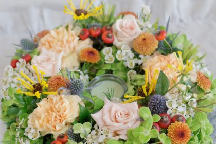 秋の気配を感じる花材をふんだんに使って、季節感あふれるアレンジメントを作ります。