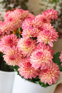 近年はお供え用の品種ではなく、花びらがふんわりと丸いポンポン咲きや