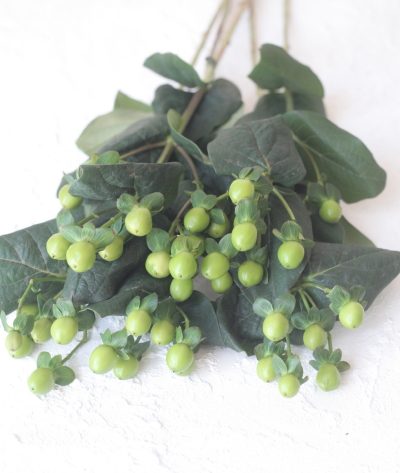 ・小ぶりな花瓶にヒペリカムだけを活けても、実の可愛らしさが引き立ちます。