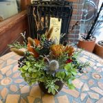 秋色の花材を束ねた、大人シックなドライアレンジ。