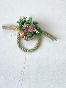 ドライになるひむろ杉や松なども加えて華やかで優しいお飾りをお作りいただきました。