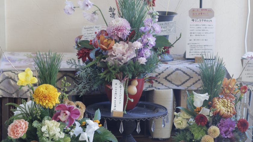 店内にはお正月に飾っていただける花、アレンジメント、