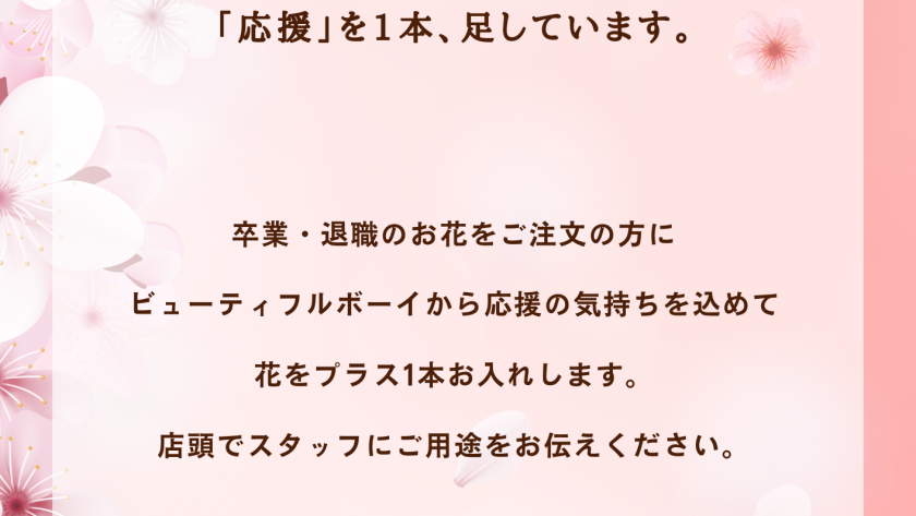 卒業・退職のお花をご注文のお客様へ、私たちから応援の気持ちを込めて