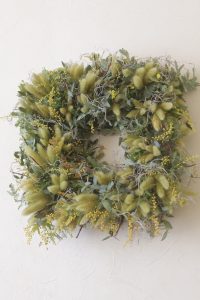 グリーンのラグラス、ミモザ、ユーカリの葉などです。