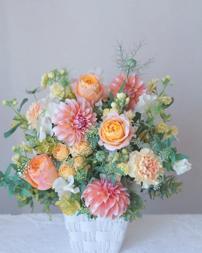 ご注文いただき先日宅配便でお届けしたアレンジメントのご紹介です。 . お誕生日のお祝いのお花。 . お花は …