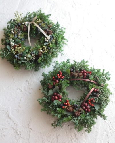 昨日に引き続きプリザーブド素材のクリスマス商品のご紹介です。 本日はクリスマスリースLサイズのご案内です。 こちらは直径 …