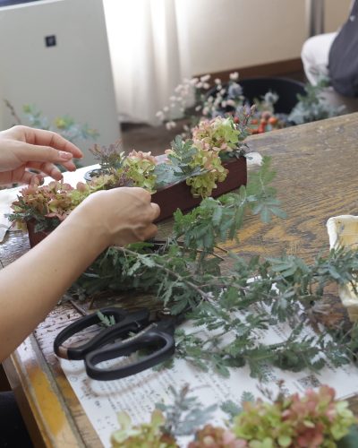 今日は午前中店舗のレッスンルームでワンタイムレッスンを開催しました。 今回のフラワーレッスンのテーマは「 秋のハーフリー …