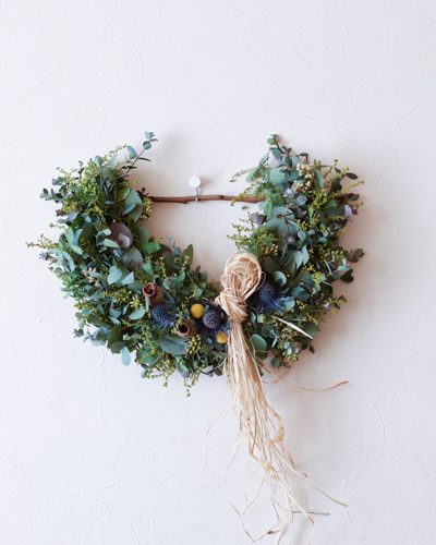 2月のワンタイムレッスンは3種類ご用意しています。 その中の2月8日開催の「たっぷりのユーカリで作る壁飾り」のサンプルが …