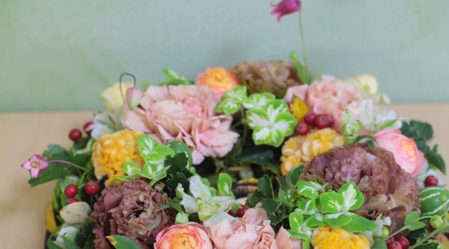 今日は店舗のレッスンルームでワンタイムレッスンが午後開催されました。 今回のフラワーレッスンのテーマは「秋を感じるアレン …