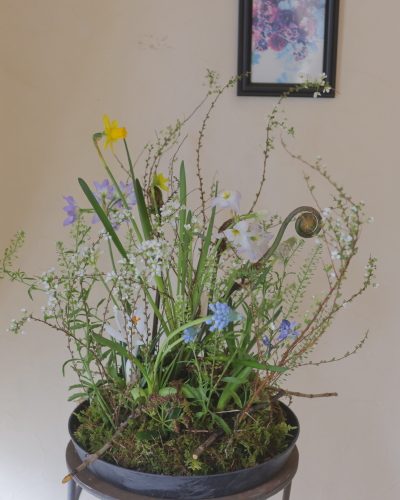 今日は午後、店舗のレッスンルームでワンタイムレッスンを開催しました。 本日のフラワーレッスンは「 春の球根を入れたアレン …