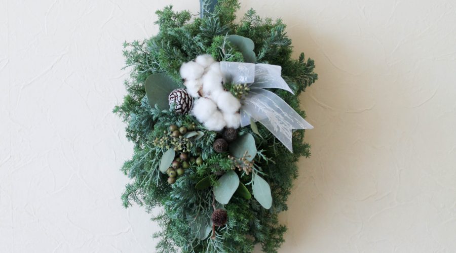 11,12月に開催するワンタイムレッスンのクリスマスレッスン。 毎日サンプルをご紹介していますが、本日はスワッグのご紹介 …