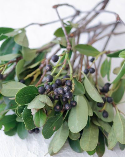 今日ご紹介する季節の花はシャリンバイ。 冬のアレンジに欠かせない“黒い宝石”。 . 今日は、冬の花材として …