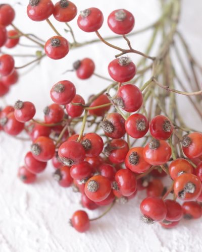 今日ご紹介する季節の花はバラの実。 文字通りバラが咲いた後につく実のことです。 と言ってもすべてのバラに実がなるわけでは …