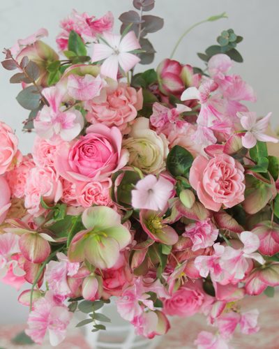 . 春のブーケを束ねました。 スイトピー、タラスピ、バラ、チューリップ、ラナンキュラス、パンジー、こでまり …