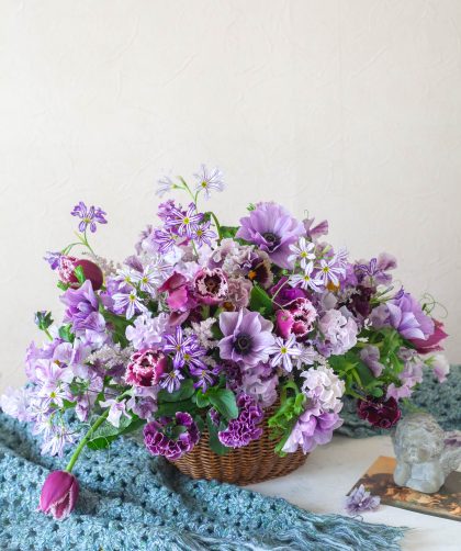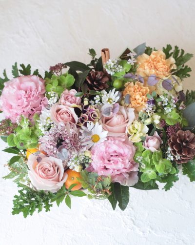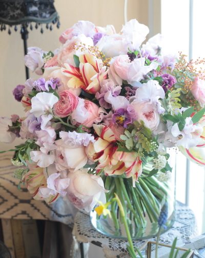 昨日の店舗定休日は恒例の一人撮影会。 春の花を使ってアレンジメントを作り撮影していました。 . 春の花は種類も豊富で色合 …