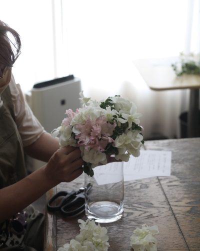 今日は店舗のレッスンルームで午前、午後と7月のワンタイムレッスン 「サマーアレンジメント」を作るレッスンを開催しました。 …