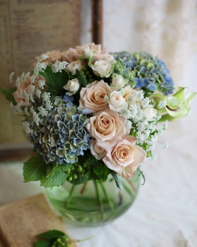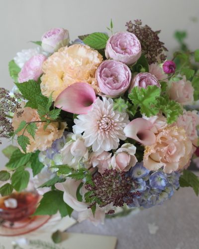 昨日の店舗定休日に撮影した写真のご紹介です。 あじさい、カラー、トルコききょうなどを入れたブーケです。 ・ . . &n …