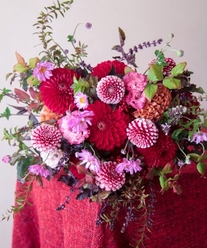 . 秋の色合わせ。 市場に並ぶ花のトーンが少しずつ深まり、 目に留まるのはやはり赤やボルドー、こっくりとし …