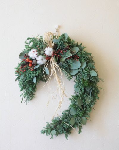 今日は午後から店舗のレッスンルームで、馬蹄型リースのワンタイムレッスンが開催されました。 今年初めて馬蹄型リースをお作り …