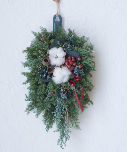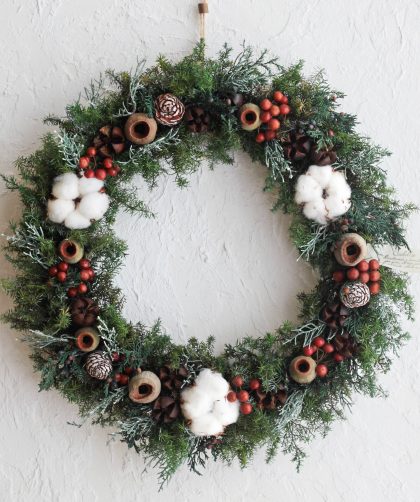 昨日に引き続きプリザーブド素材のクリスマス商品のご紹介です。 本日はクリスマスリースLサイズのご案内です。 こちらは直径 …