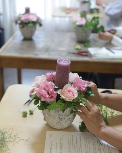今日は午前、午後と店舗のレッスンルームで9月のワンタイムレッスン、 「キャンドルを使ったアレンジメント」が開催されました …