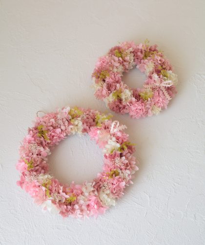 当店で作成しているプリザーブドフラワー素材のリース。 プリザーブドフラワーを使っているので数年間、美しさを保ちます。 & …