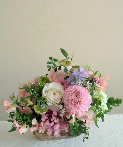 今日はお届けしているアレンジメントのご紹介です。 お誕生日、お悔やみ、お見舞いなどご用途は色々ですが、 春の花を入れて季 …
