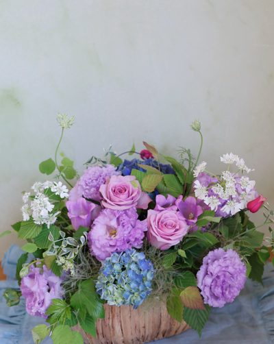 本日午後は店舗のレッスンルームでワンタイムレッスンを開催しました。 今回のフラワーレッスンのテーマは「ブルー系の花でアレ …
