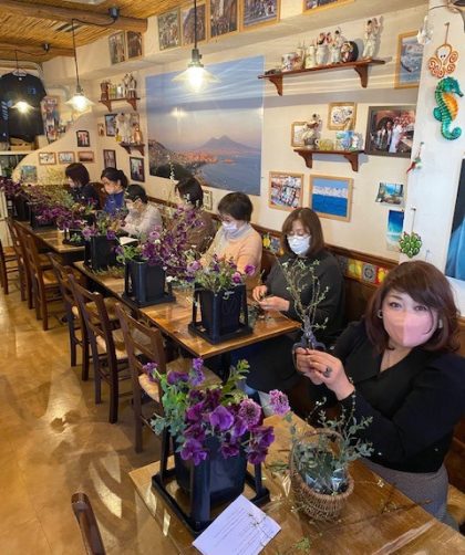 今日は1月のワンタイムレッスン、「春の花でアレンジメント」でした。 今回もたくさんの方にご参加いただきありがとうございま …