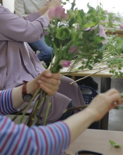 今日は店舗のレッスンルームで午後ワンタイムレッスンが開催されました。 今日のレッスンテーマは「初夏のブーケ」。 バラ、芍 …