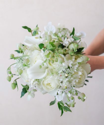 . 昨日お渡ししたブーケです。 急なご注文でしたが、咲き方が美しい白バラ・ブルゴーニュ、ラペイロージャー、 …