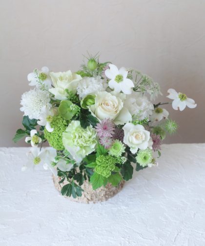 . . 画像はご注文いただいた誕生日お祝いのお花。 白とグリーンを中心にしたアレンジをご希望 …