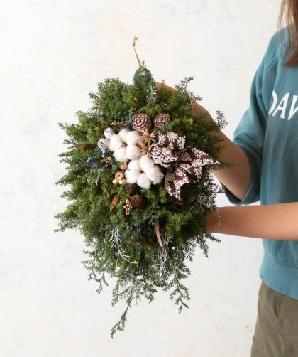 今日は午後、店舗のレッスンルームでワンタイムレッスンを開催しました。 テーマは「テーブルリースアレンジ」。 リース型の吸 …