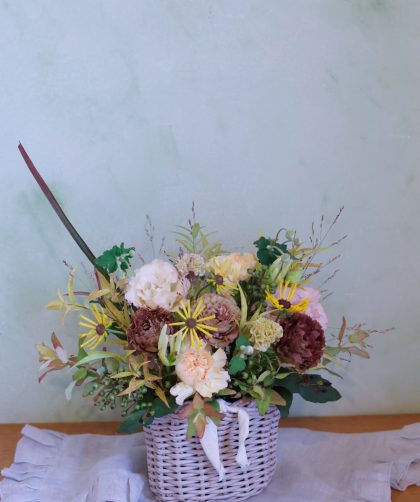 今日は店舗のレッスンルームでワンタイムレッスン が開催されました。 今回のフラワーレッスンのテーマは「秋を感じるアレンジ …