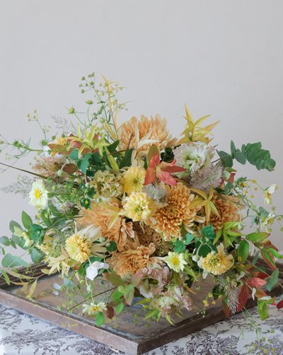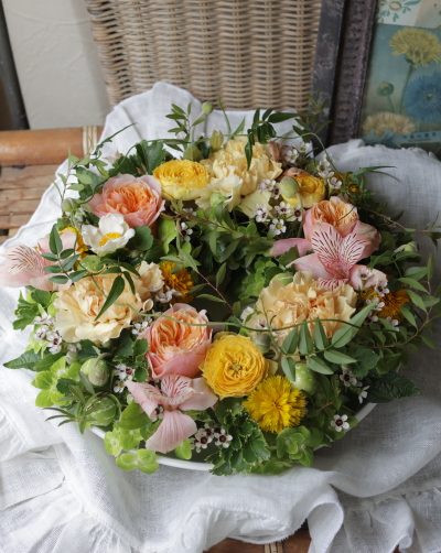 今日は店舗のレッスンルームでワンタイムレッスンが午前、開催されました。 本日のフラワーレッスンのテーマは「リースタイプの …