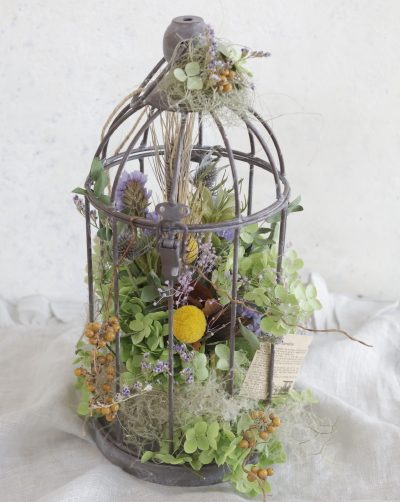 今日は午後店舗のレッスンルームでワンタイムレッスンが開催されました。 今回のフラワーレッスンのテーマは「鳥かごアレンジ」 …