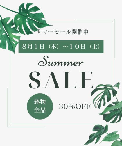 昨日から始まりました鉢物セール。 本日も元気に開催中です。 店頭、店内にございますすべての鉢物が通常価格より30%オフ …