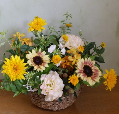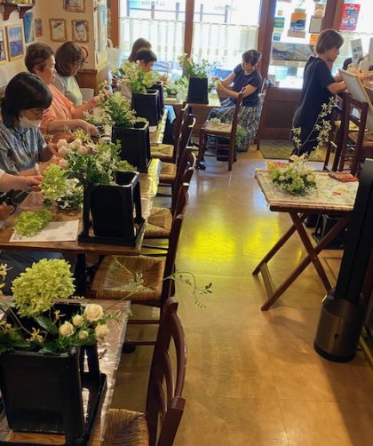 今日は午後店舗のレッスンルームでワンタイムレッスン が開催されました。 今回のフラワーレッスンのテーマは「サマーアレンジ …